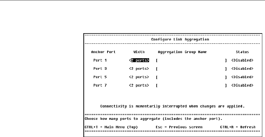Status: Enables or disables the aggregated link (press z).