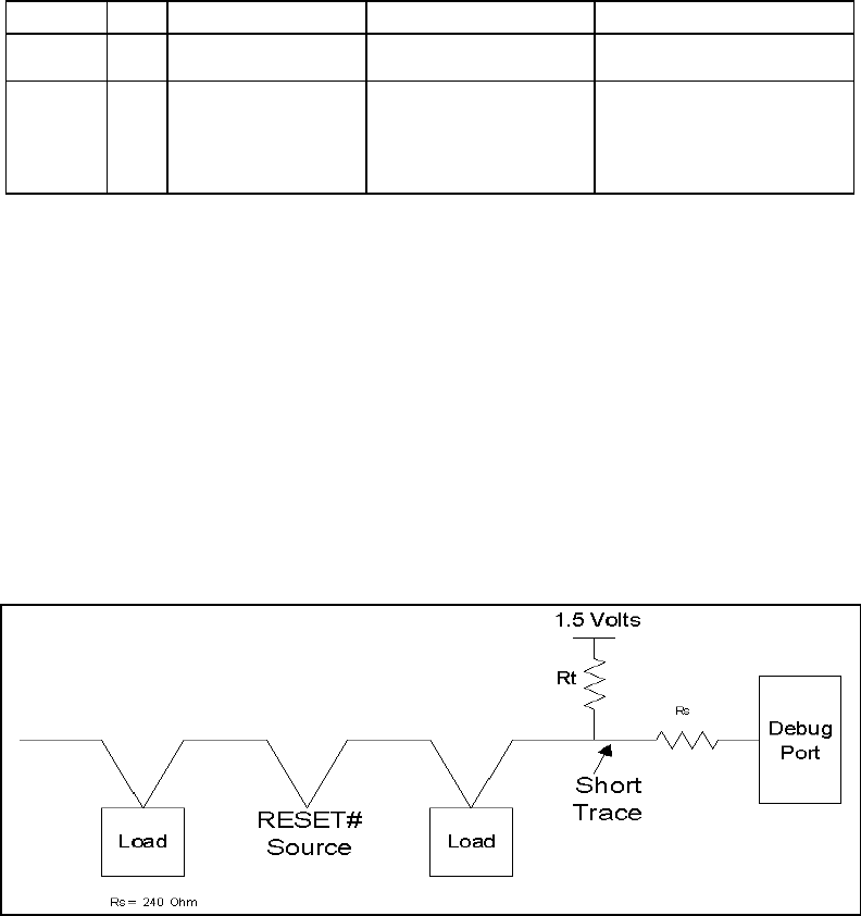 not the debug port is installed. RESET# from the processor system should be terminated at the debug port, as