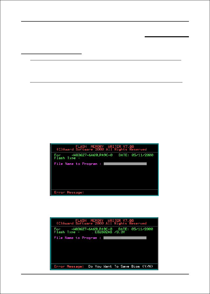 4. If you want to save the previous BIOS data to the diskette, please key in [Y],